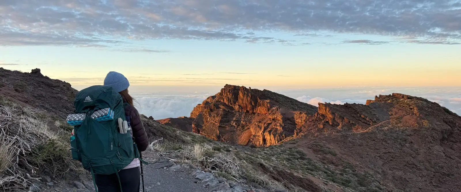 Be aware that the weather changes quite a bit on this trek. In the first stages, when you are above 2000 meters, the weather is usually sunny and can be windy. However, when you descend into the center of the island, it is likely you will come under the cloud cover and have a much colder and wetter experience. Pack clothing for both scenarios to be safe.